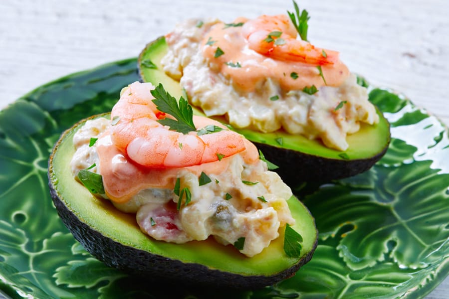 Otra excelente alternativa es un aguacate relleno de mariscos, como cangrejo o gambas, acompañado de una salsa suave de yogur y limón. Este plato combina frescura y sofisticación en cada bocado.